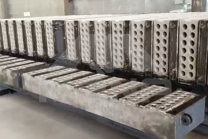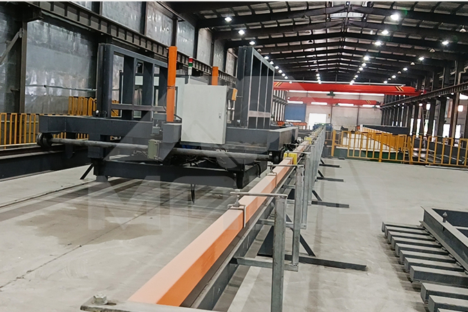 瑪納M17陶粒墻板生產(chǎn)線采用立模法機組流水作業(yè)式生產(chǎn),模車可采用主動行走方式,操作更靈活便捷,自動化程度更高,功能更齊全,生產(chǎn)產(chǎn)品質(zhì)量更好,性價比更高,是目前國內(nèi)外市場中較先進的生產(chǎn)輕質(zhì)墻材的裝備之一。
