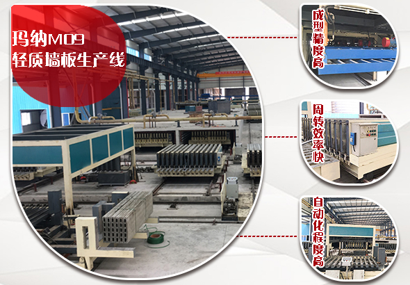 裝配式建筑有五大特點:工廠化生產、一體化裝修、標準化設計、信息化管理和裝配式施工,有些優勢是傳統施工方式無法達到的,所以要推動裝配式建筑發展自然少不了墻板設備,新型輕質隔墻板生產設備選哪家?新型輕質隔墻板生產設備目前需要選擇有很多,瑪納公司是一家高端環保智能墻板設備高新技術企業,公司自主研制開發的M09輕質隔墻板生產線可滿足客戶大規模、自動化生產需求,作為新型輕質隔墻板生產設備生產的板材具有一次性成型,產品質量穩定。M09輕質隔墻板生產設備主要組成是:①功能主機部分②上成型機③擺渡車④自動布料機⑤出板接板機構⑥抽穿芯一體機。