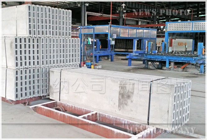 我公司M08型發泡混凝土空心板自動化生產線采用立模法機組流水工藝生產,擁有完全的自主知識產權,可生產各類發泡混凝土空(實)心板,年產50萬平方。該線需直接操作工人8-10人,工作時長8-10小時,一天兩班,一天3循環。