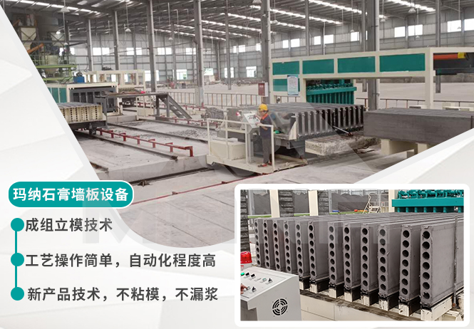 瑪納公司是石膏墻板生產設備廠家,其全自動石膏墻板設備成型裝置具備結構合理、操作簡單、便于移動、石膏墻板長度可調、勞動強度低、能耗低的優點,生產線工藝從攪拌到出板基本實現自動化,操作無需手工干預;成組立模機模腔經特殊工藝處理,免清模;高分子芯模設計,免清管,確保產線運行;相比業內同樣產能的生產線,操作用工最少,同等價位區間的產線,產能高;整條生產線占地空間小,操作方便,生產效率高,可實現24小時不間斷生產,單線年產能高。