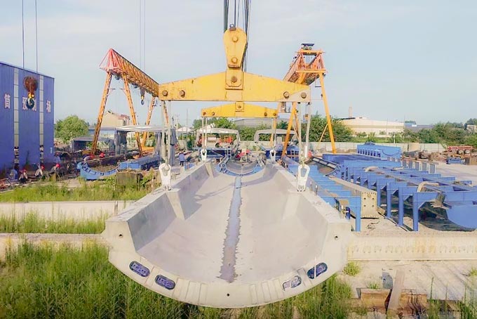 1)混塔管片二分體立式生產(chǎn)工藝具有單塊構(gòu)件體積大、構(gòu)件尺寸偏差大和構(gòu)件底部容易出現(xiàn)因混凝土漏振而疏松的質(zhì)量問(wèn)題,同時(shí)具有生產(chǎn)空間受限、生產(chǎn)效率低和運(yùn)輸不便等缺點(diǎn)。