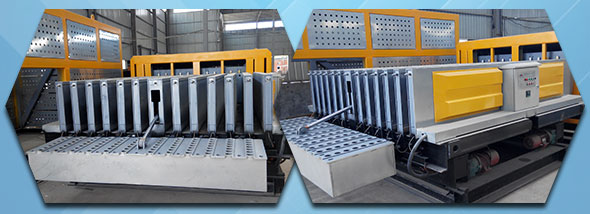 瑪納M01型GRC墻板成組立模成型機其主要應用領域為輕質墻板行業,主要是為生產GRC布網式多孔輕質墻板而研制的,成型機理為模腔成型。所以對成型構件的結構形式及成型材料的品種并無特殊選擇,故對非布網構件、無孔構件、夾芯構件及其他材料如陶粒、發泡砼、石膏也同樣適用。